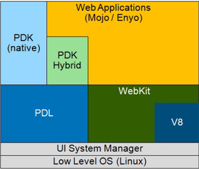 HP webOS содержит встроенную реализацию открытого пакета WebKit со встроенным интерпретатором кода JavaScript v8, библиотеки разработки приложений PDL и инструменты PDK для создания plug-ins с кодом на C/C++ (Plug-in Development Kit). PDK дает, в том числе, возможность включать в программу трехмерную графику, написанную на OpenGL ES.