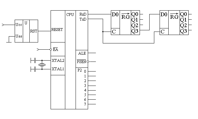 В настоящее время разработано огромное количество микросхем таких как, например, синтезаторы частоты, микросхемы приЈмников, блоков цветности телевизоров, микросхем памяти данных, управление которыми осуществляется по последовательному протоколу. При этом микросхемы обычно реализуют синхронные протоколы обмена SPI или I2C. Последовательный порт микроконтроллеров семейства MCS-51, работающий в нулевом режиме позволяет осуществлять обмен с такими микросхемами при минимальных программно-аппаратных затратах.